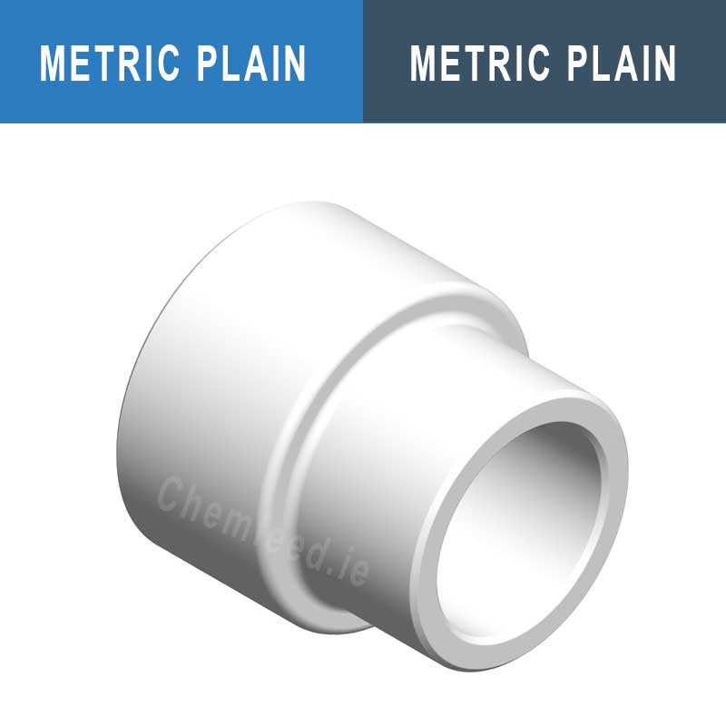 The PVDF Reducing Socket Metric Plain - Metric Plain for socket fusion is an essential fitting designed to transition between two different pipe diameters in fluid handling systems. Constructed from polyvinylidene fluoride (PVDF), it offers exceptional resistance to harsh chemicals and high temperatures, making it suitable for various industrial applications. The socket fusion method ensures a secure and leak-proof connection, providing reliability and durability in demanding environments. This reducing bush is ideal for applications in chemical processing, water treatment, and other settings where performance and corrosion resistance are critical.